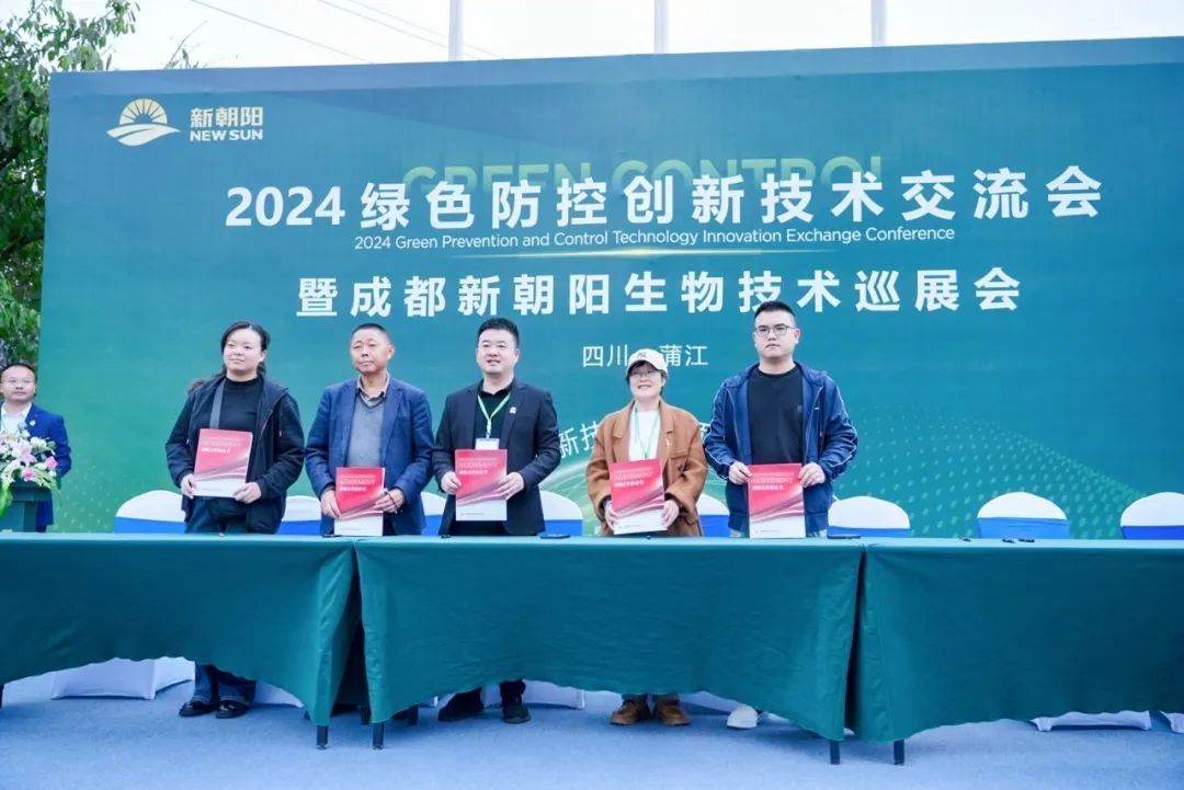 近百家與會企業(yè)代表與新朝陽就生物技術(shù)的市場應(yīng)用、發(fā)展趨勢以及合作前景進行了深入探討,并達成合作共識,簽署戰(zhàn)略合作協(xié)議書,共同推動綠色防控技術(shù)的普及與應(yīng)用,為農(nóng)業(yè)可持續(xù)發(fā)展貢獻更多力量。
